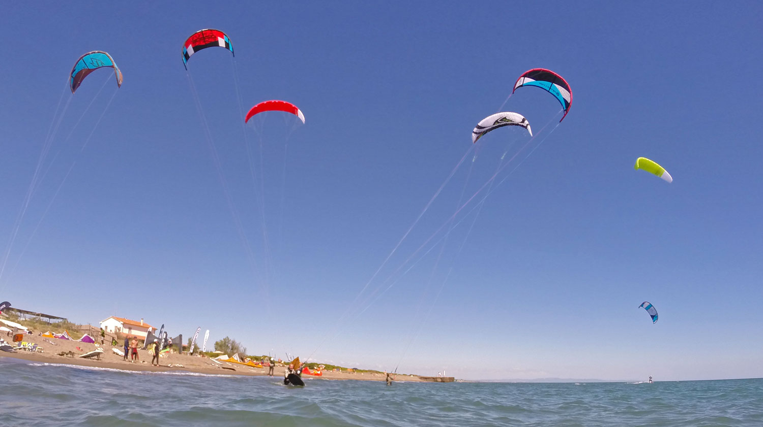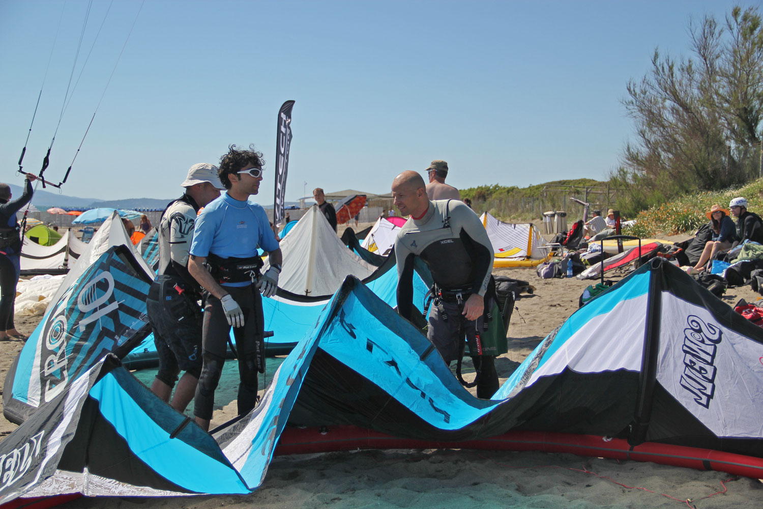 And so I headed to Capalbio camping in the hope to find some wind and some open minded kiters. (I had a range of kites with me from Twinskins to LEIs.)