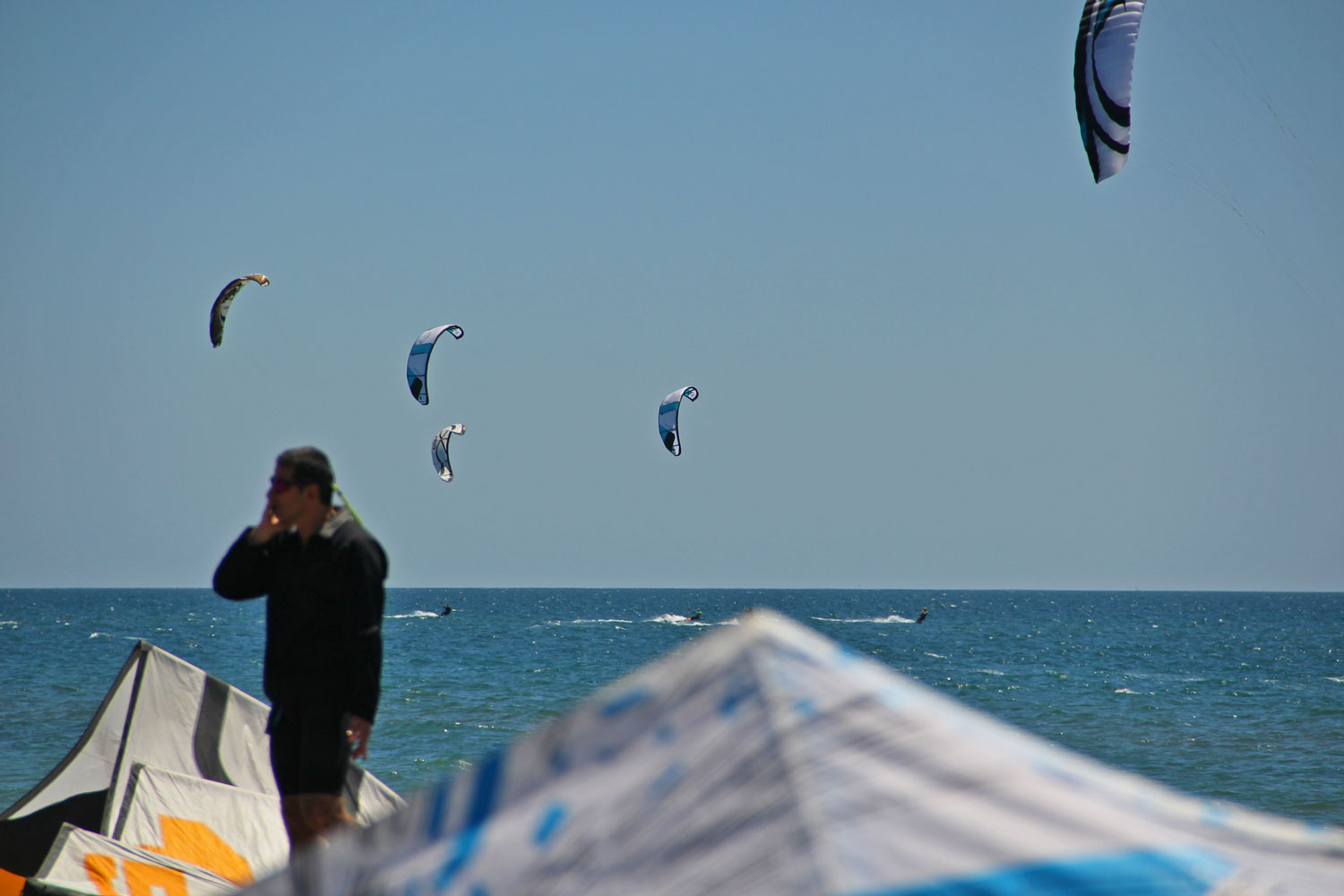 Saturday gave us the strongest breeze (13 t0 16 knots) and I managed to put a 15m Phantom up. We even got a 9m Swell into the action, showing off its bottom end.