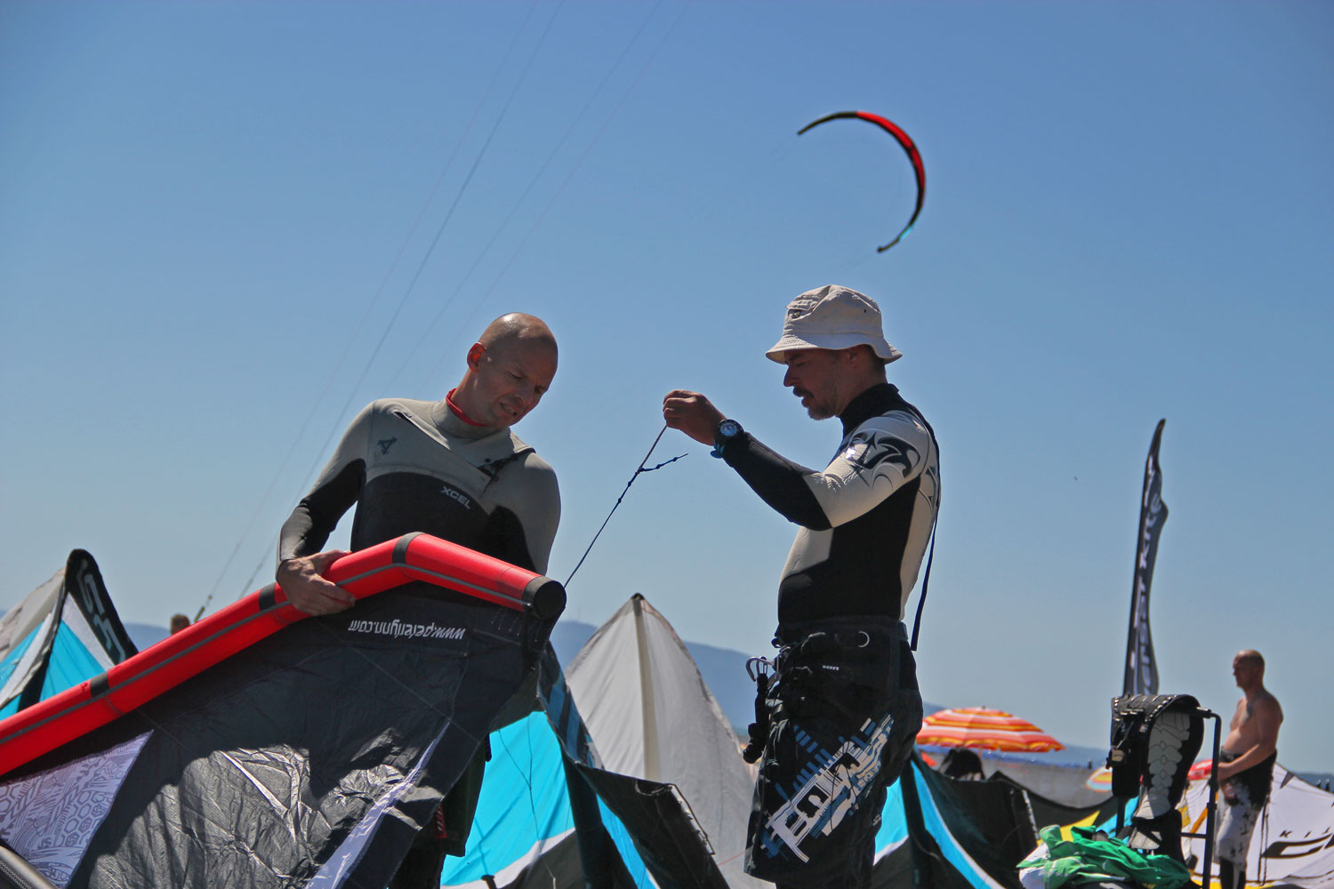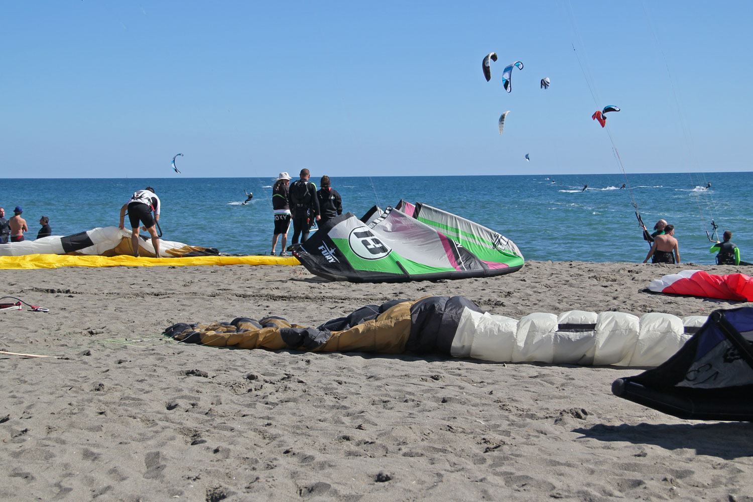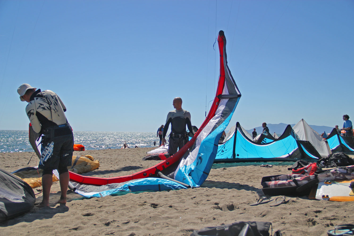 The beach was tightly packed with foils and Tube kites of every brand, and the wind was on the light side… And to my delight the participants were eager to meet, try and share ideas.