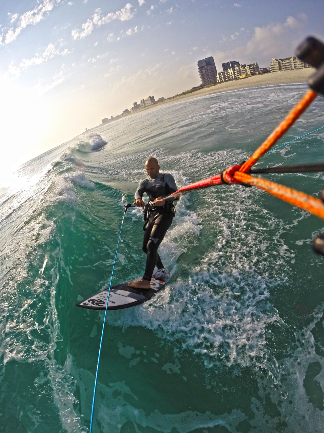 Cape Town Winter kiting ain’t for the faint hearted. When there is wind, it is gusty, often cross off, the temperatures are cold and the swell is generally big.